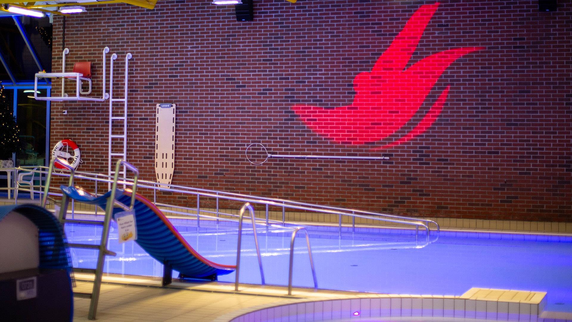 På Moa svømmehall er det varmt, oppholdsvær og 28,5 - 34 grader i vannet.